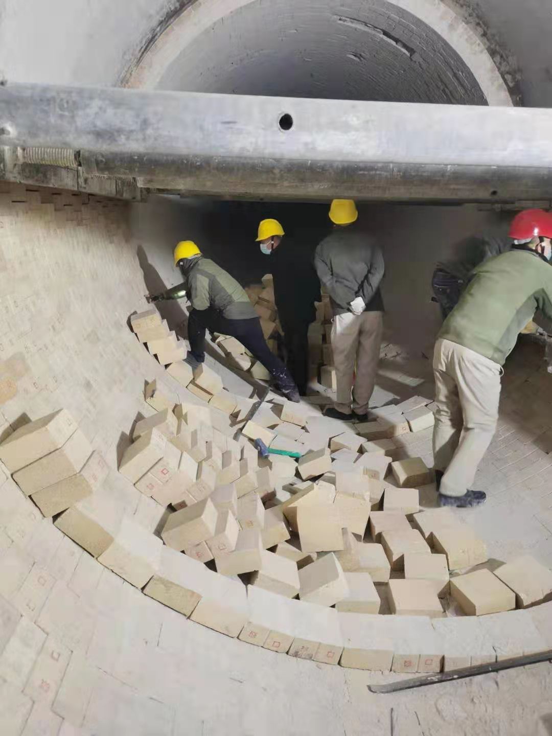 入窯鉸刀更換結(jié)束后,幾名維修工再一次細致的對鉸刀附屬設(shè)備進行檢查,確保回轉(zhuǎn)窯開啟后入窯鉸刀能夠長周期穩(wěn)定運行。回轉(zhuǎn)窯內(nèi),平時的崗位巡檢操作工變身砌磚師傅,對窯磚進行砌筑。大家配合默契,像極了從事砌磚行業(yè)多年的老師傅。窯頭平臺上,頂著寒風搬磚的是各裝置協(xié)調(diào)的員工。一方有難八方支援,不管回轉(zhuǎn)窯還是電石爐,都是資源再生公司的設(shè)備。哪兒檢修,其他裝置馬上協(xié)調(diào)人員配合。一次檢修就是一次考驗,不僅要保安全保進度,還要保證檢修質(zhì)量。各級管理人員在保證安全的前提下對窯磚砌筑質(zhì)量進行檢查,確保檢修質(zhì)量。