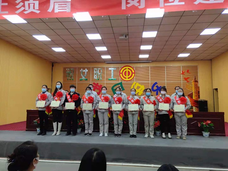 最后,女工主任宣讀受表彰的先進單位及先進個人,其中資源再生公司電石系統(tǒng)中控操作崗位榮獲“巾幗文明示范崗”稱號,生料、電石一裝置等四位女職工榮獲“三八紅旗手”、“優(yōu)秀女職工”稱號。工會主席等人對受表彰人員頒發(fā)榮譽證書及禮品。