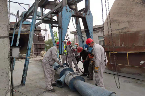 團隊是什么,是為了實現(xiàn)一個共同的目標而集合起來的人。 任何一個人的力量都是渺小的,只有融入團隊,只有與團隊一起奮斗,勁往一處使,你才能實現(xiàn)個人價值的最大化,你才能成就自己的卓越!伴隨副總經(jīng)理一聲令下,所有人員喊著豪邁的口號,配合吊機的力臂推動著奇重無比的噴煤管一點一點的前行。又一會功夫將回轉窯門緩緩調至檢修現(xiàn)場安全的位置。