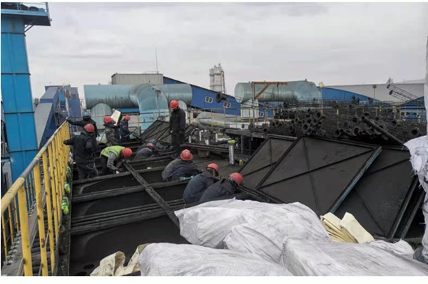 為不耽誤生產(chǎn),大家快速吃完中午飯后,又投入到新布袋的套裝和安裝工作中!安皇且s時間趕進度嗎?那咱們來比試比試,196條布袋,看那一組先完成”。隨著“12條、18條……”的報數(shù)聲,大家都忘記了頭頂頭頂烈日的炙烤,連續(xù)奮戰(zhàn)8個多小時,終于在下午16:50完成了最后一條布袋的安裝。