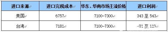 表1 進(jìn)口利潤(rùn)核算(單位:元/噸)