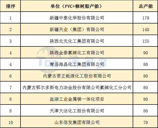2.3 2019年最新生產企業(yè)產能前十排名
