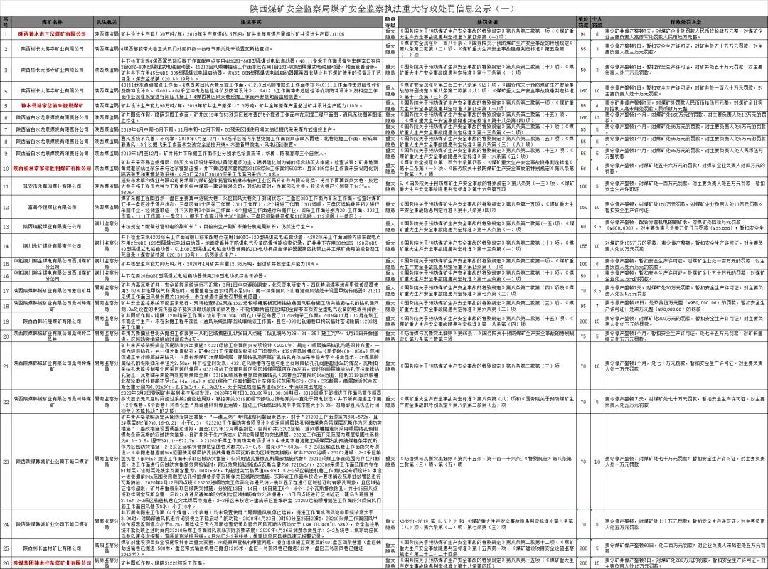 6月10日,陜西煤礦安全監(jiān)察局官網發(fā)布了《關于2020年煤礦安全監(jiān)察執(zhí)法重大行政處罰信息公示(一)》。